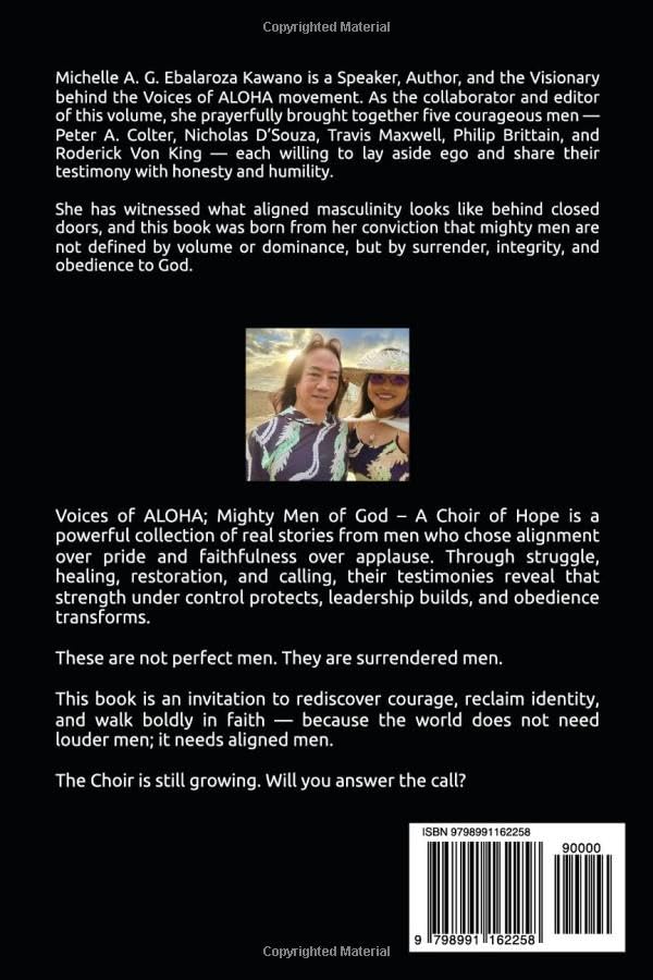Curated, edited, and brought together by Speaker and Author Michelle A. G. Ebalaroza Kawano, Visionary of the Voices of ALOHA movement, this volume restores faith-centered masculinity through story, reflection, and spiritual alignment.